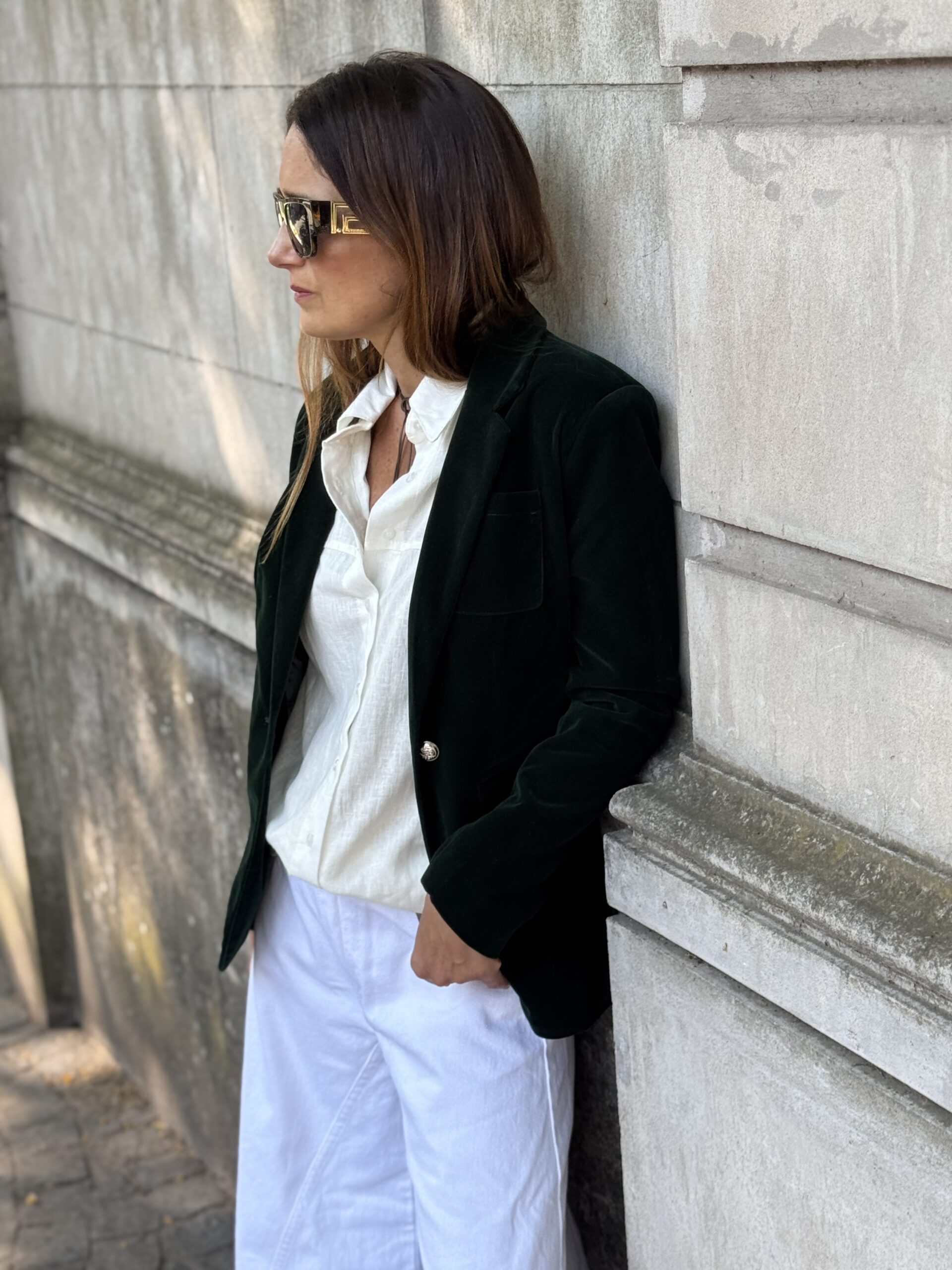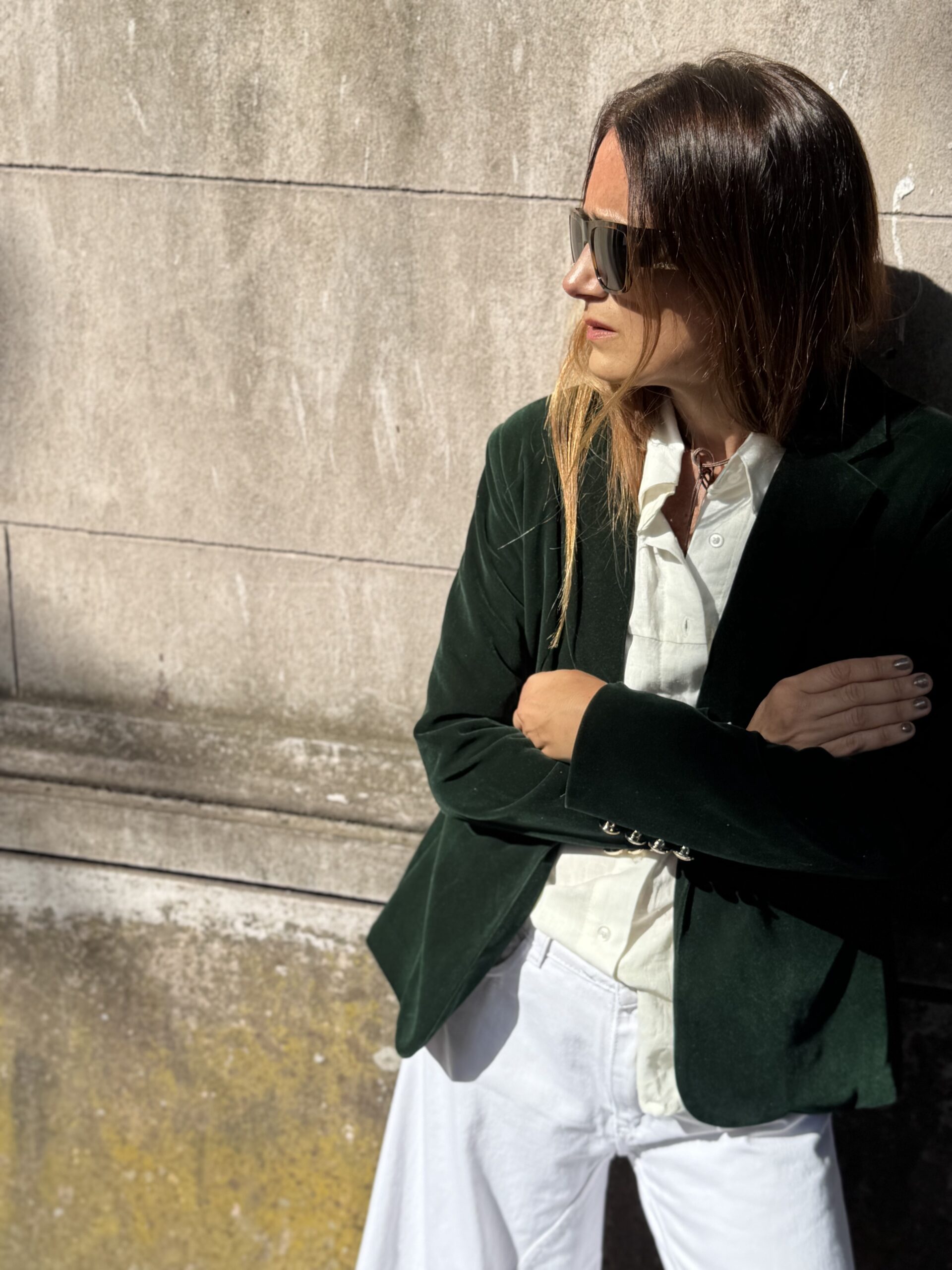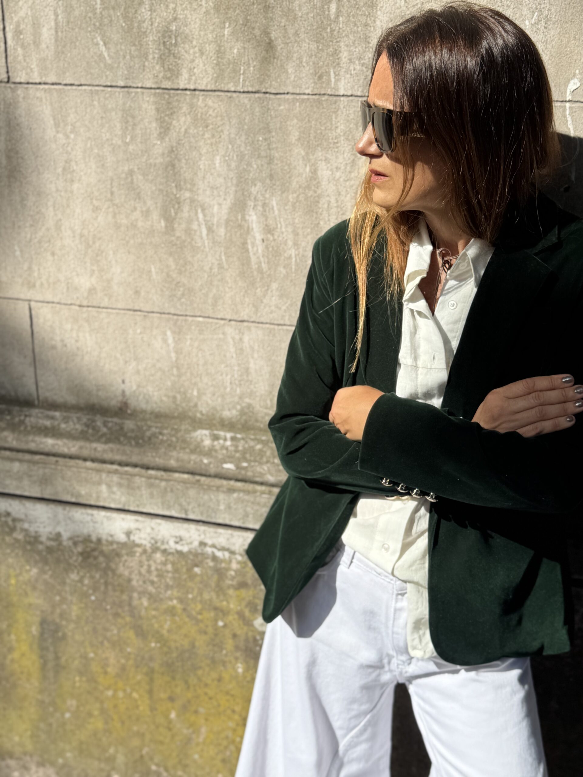 Blazer confeccionado en pana verde, forrado en su interior, con botones decorativos en el puño y un solo botòn delantero. Super còmodo y abrigado. Talles disponibles del S al XL.