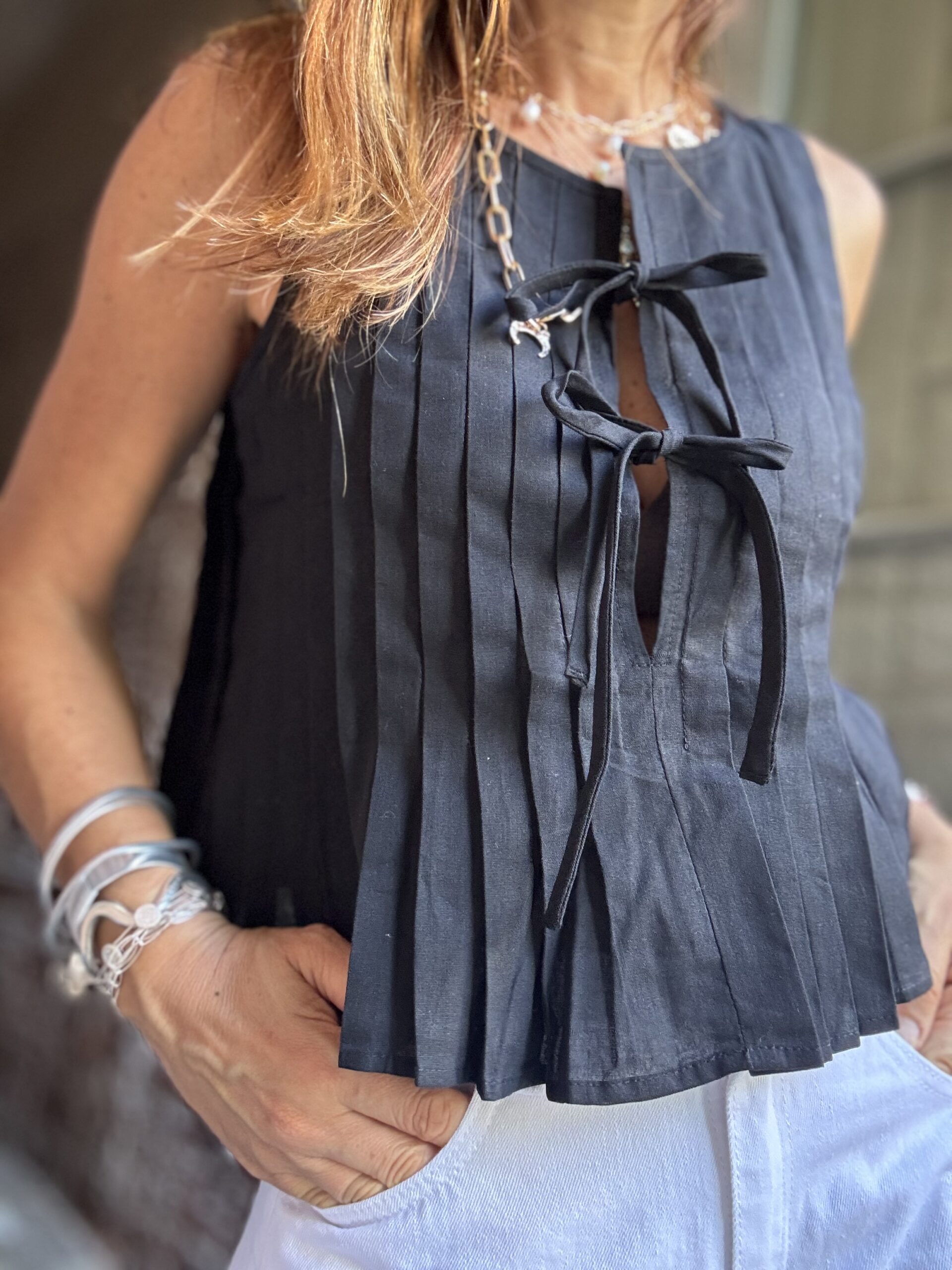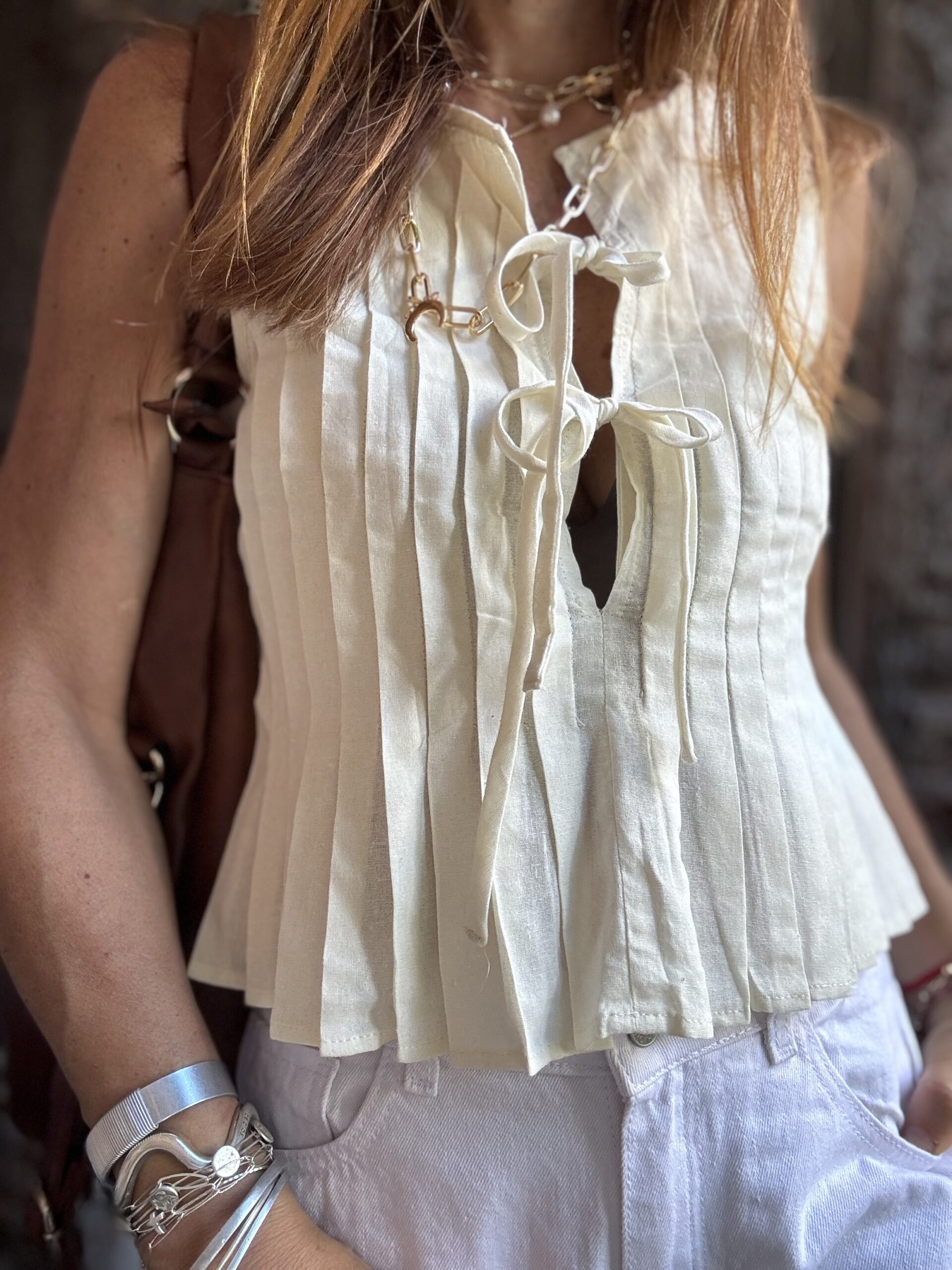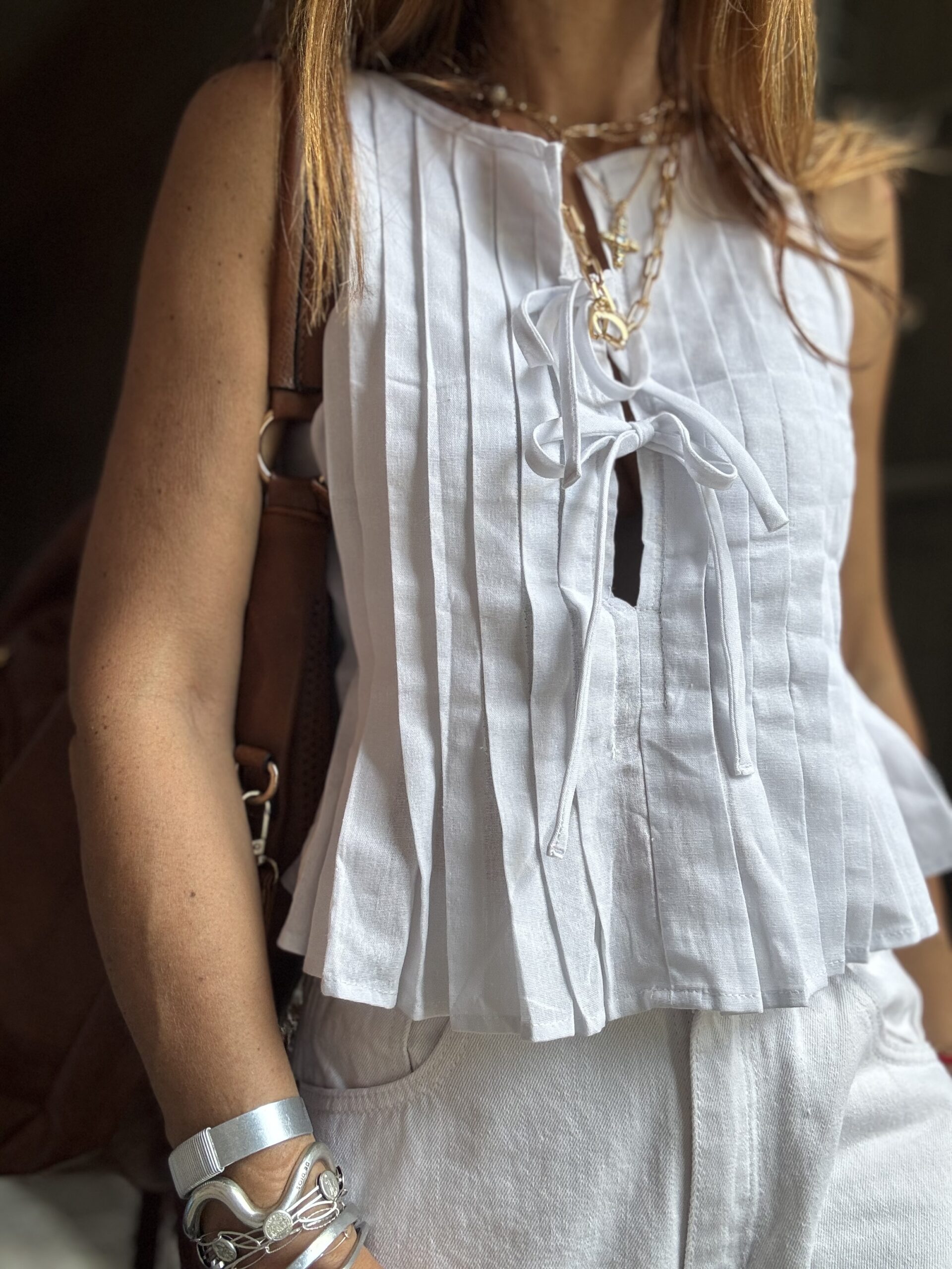 Blusa plisada confeccionada en poplin con lazos.