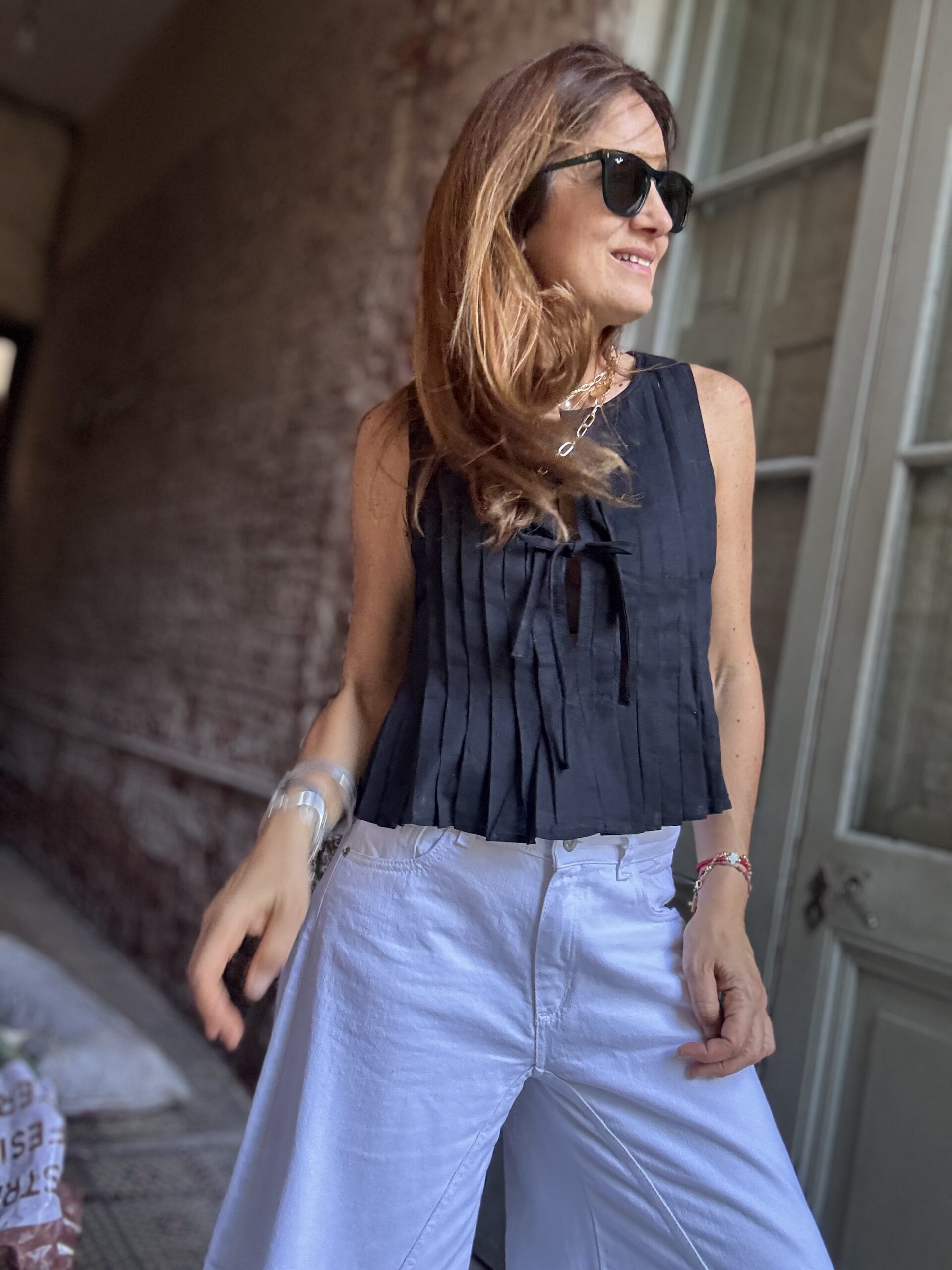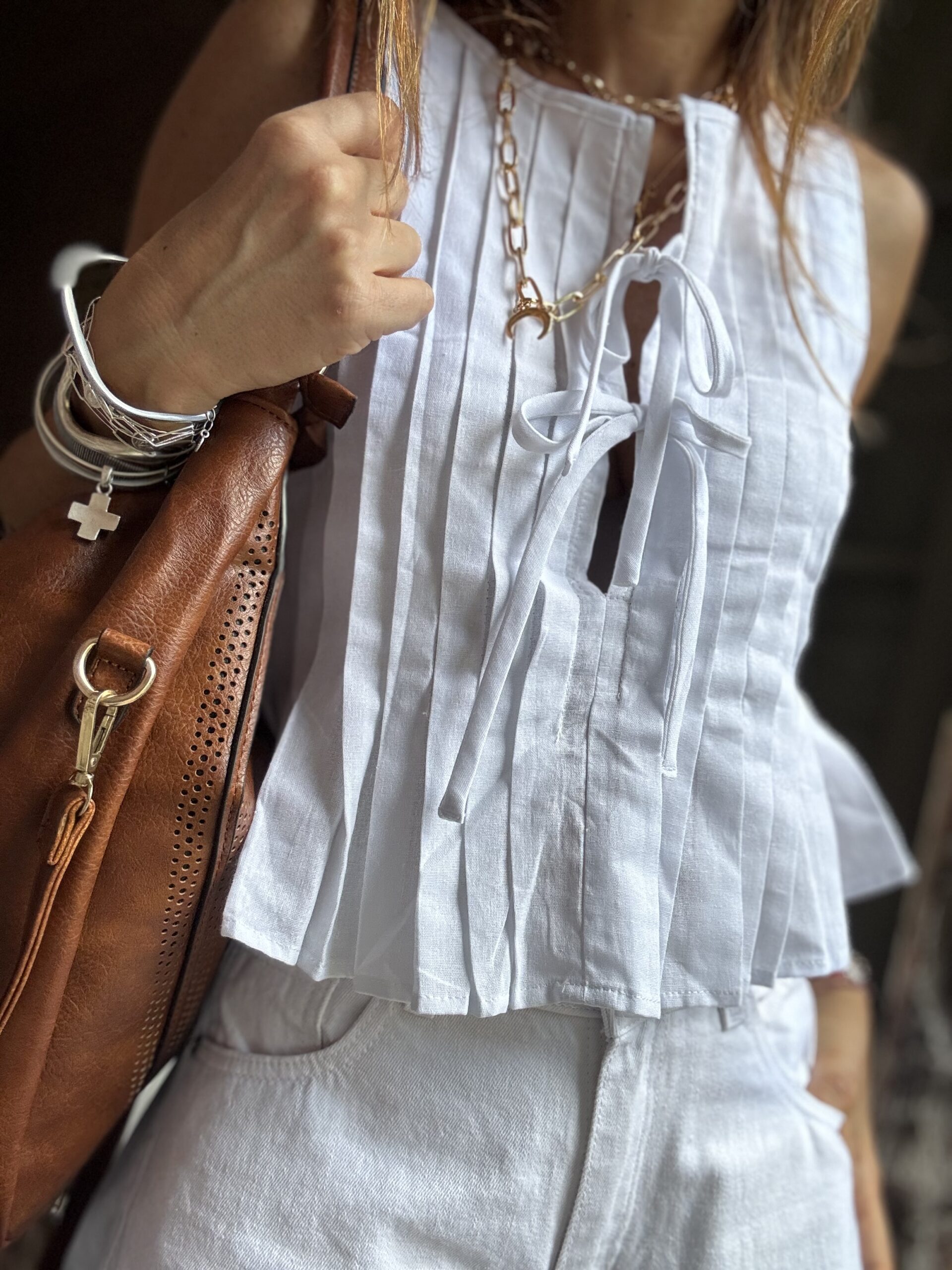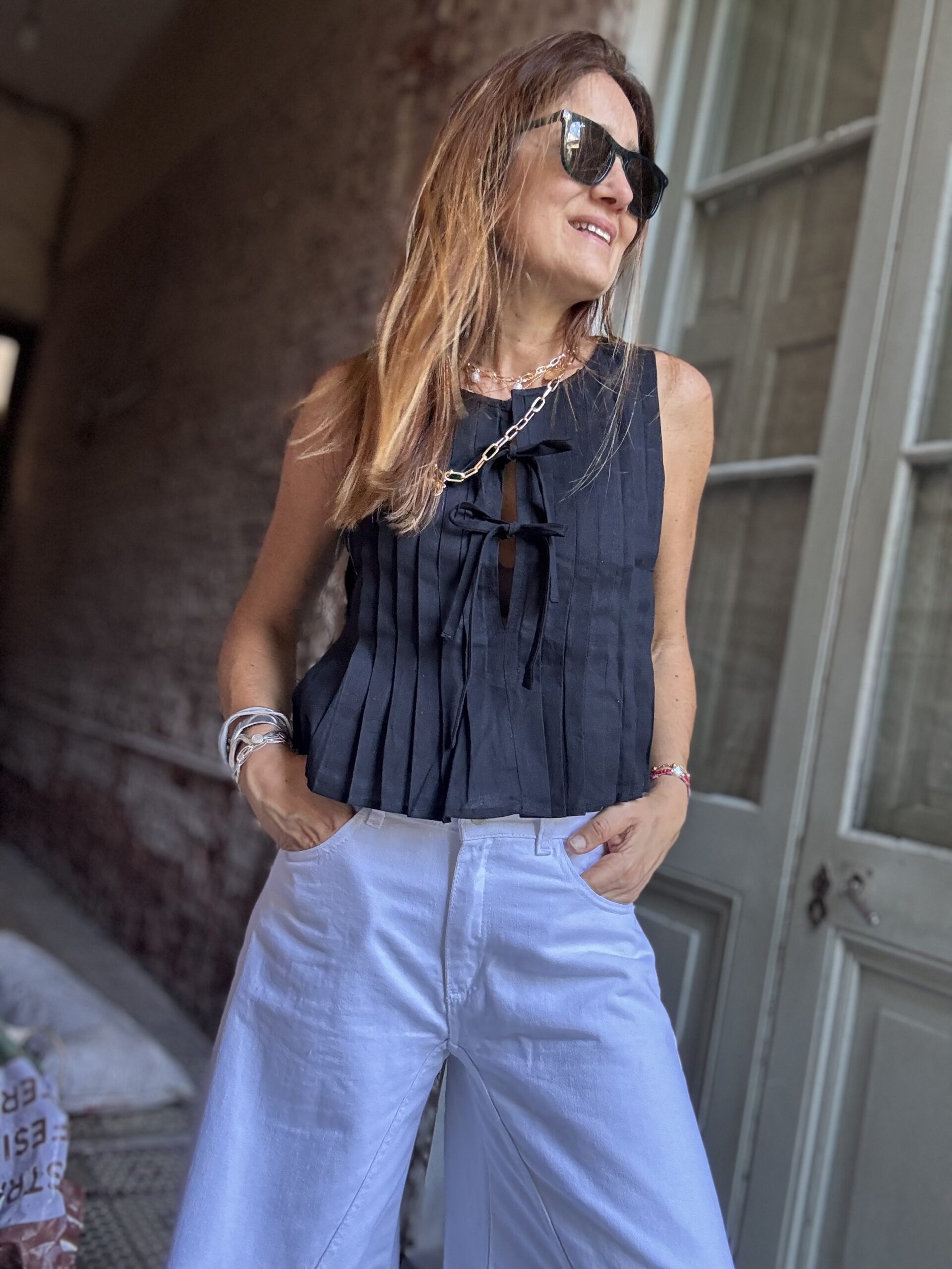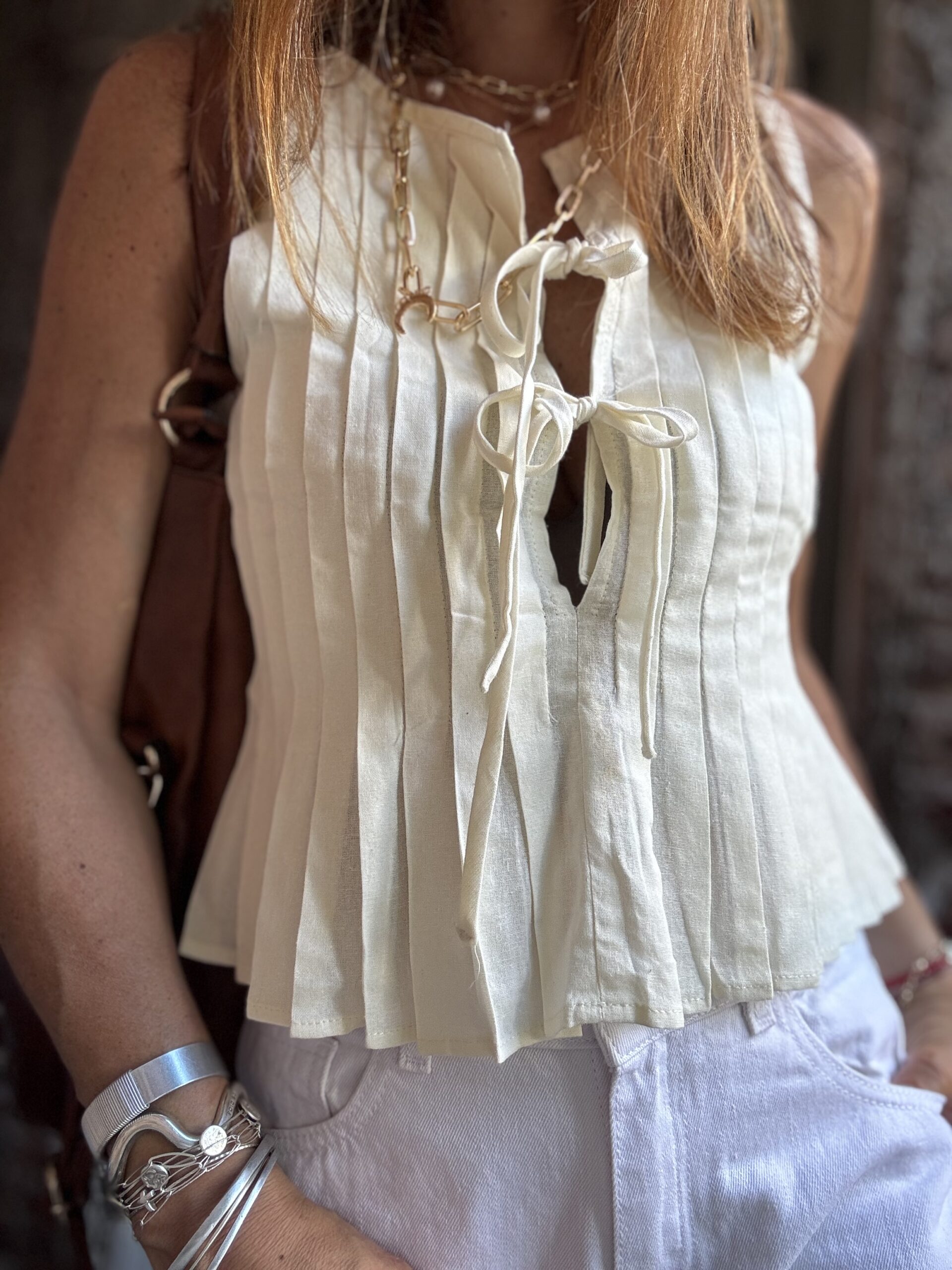 Blusa plisada confeccionada en poplin con lazos.