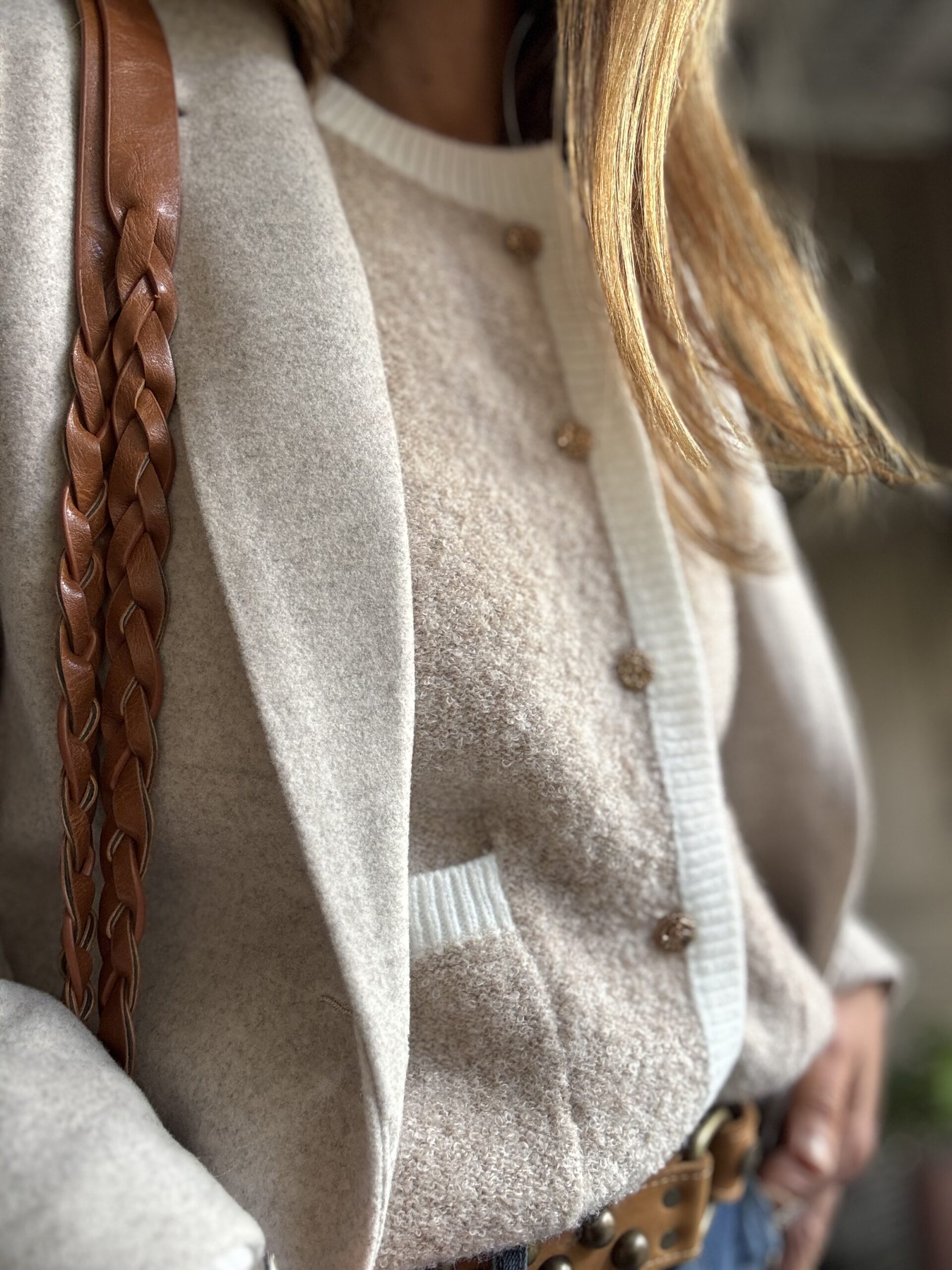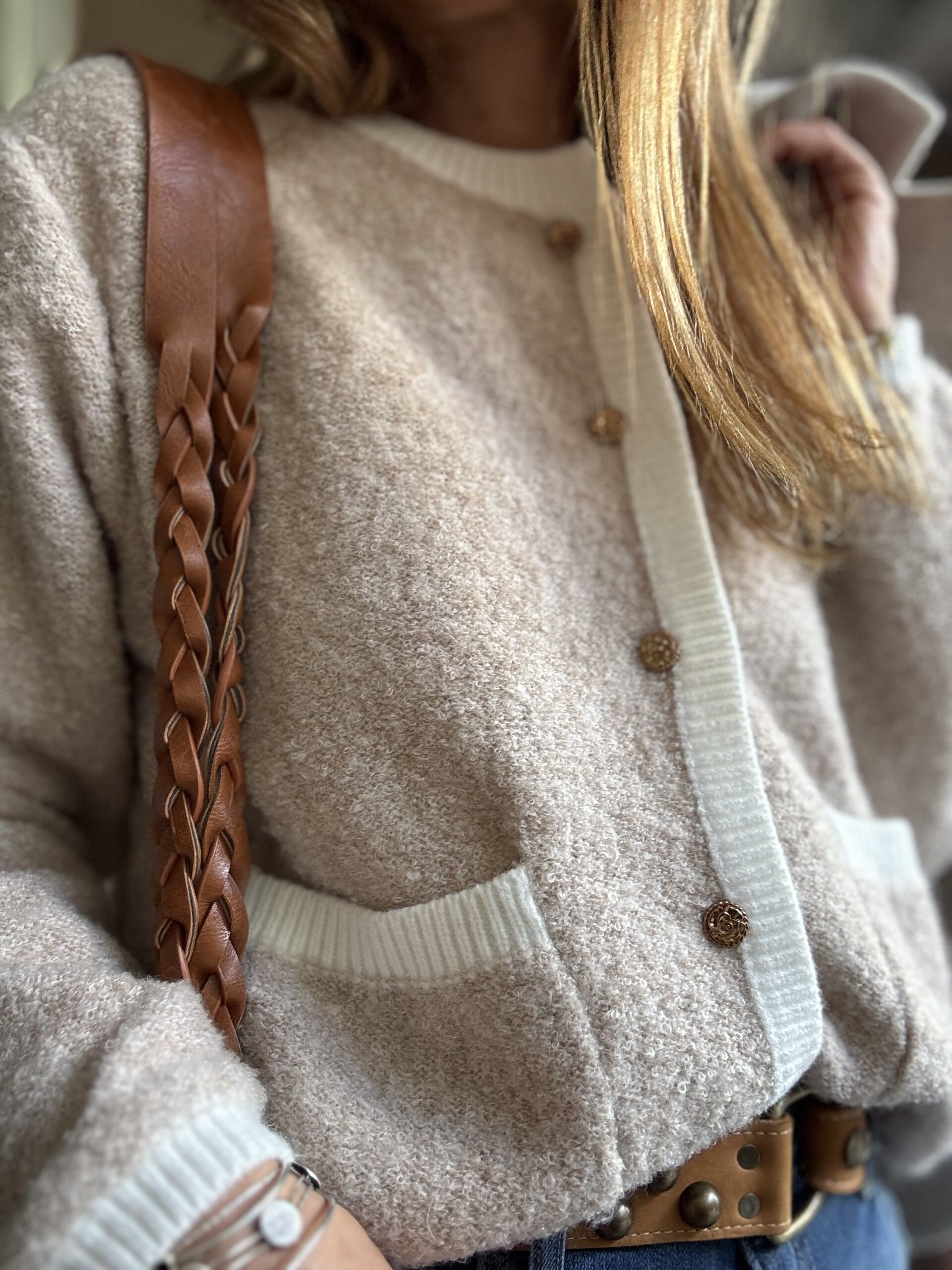 Cardigan de lana con guarda y botones dorados. Super calentito.