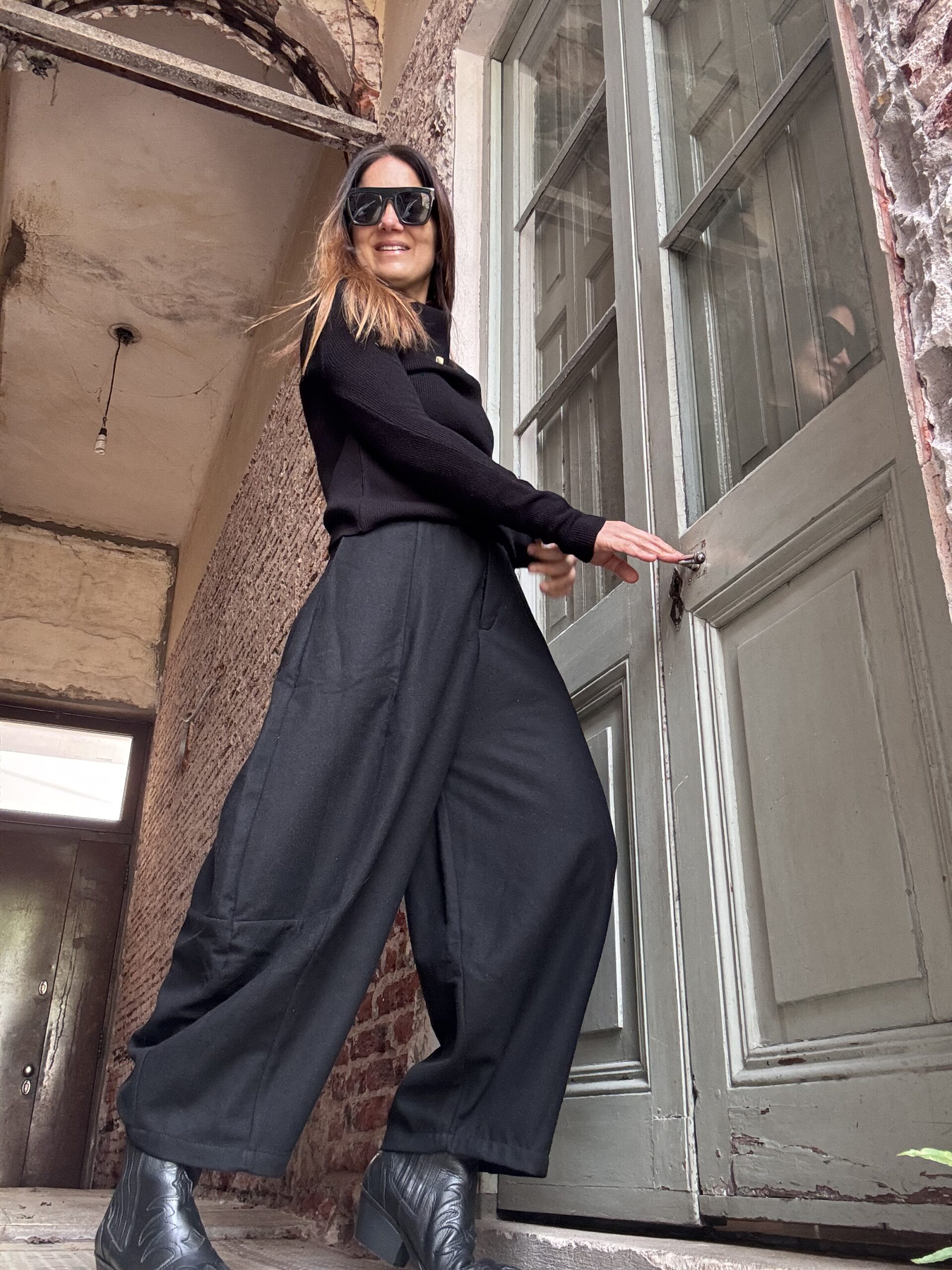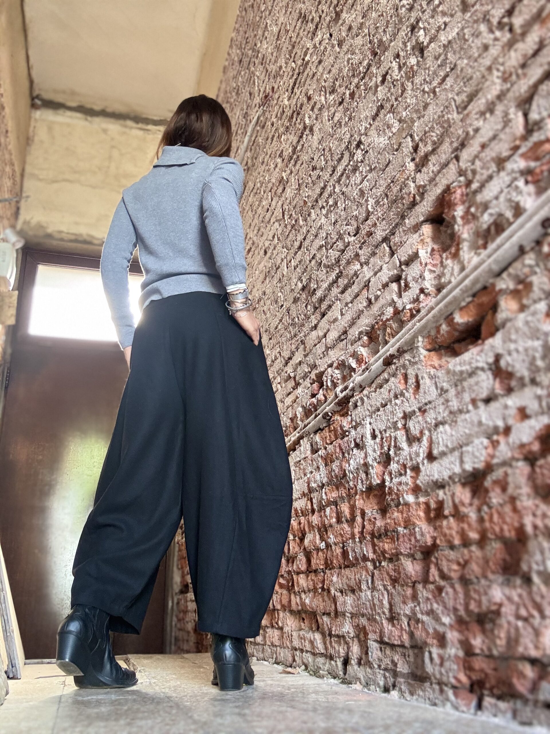 Pantalón estilo barrel confeccionado en paño (40% lana). Abrigado.
