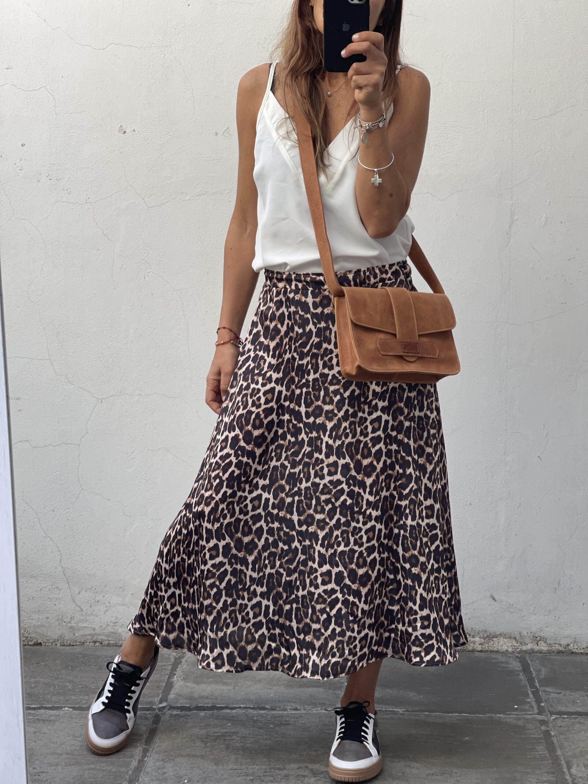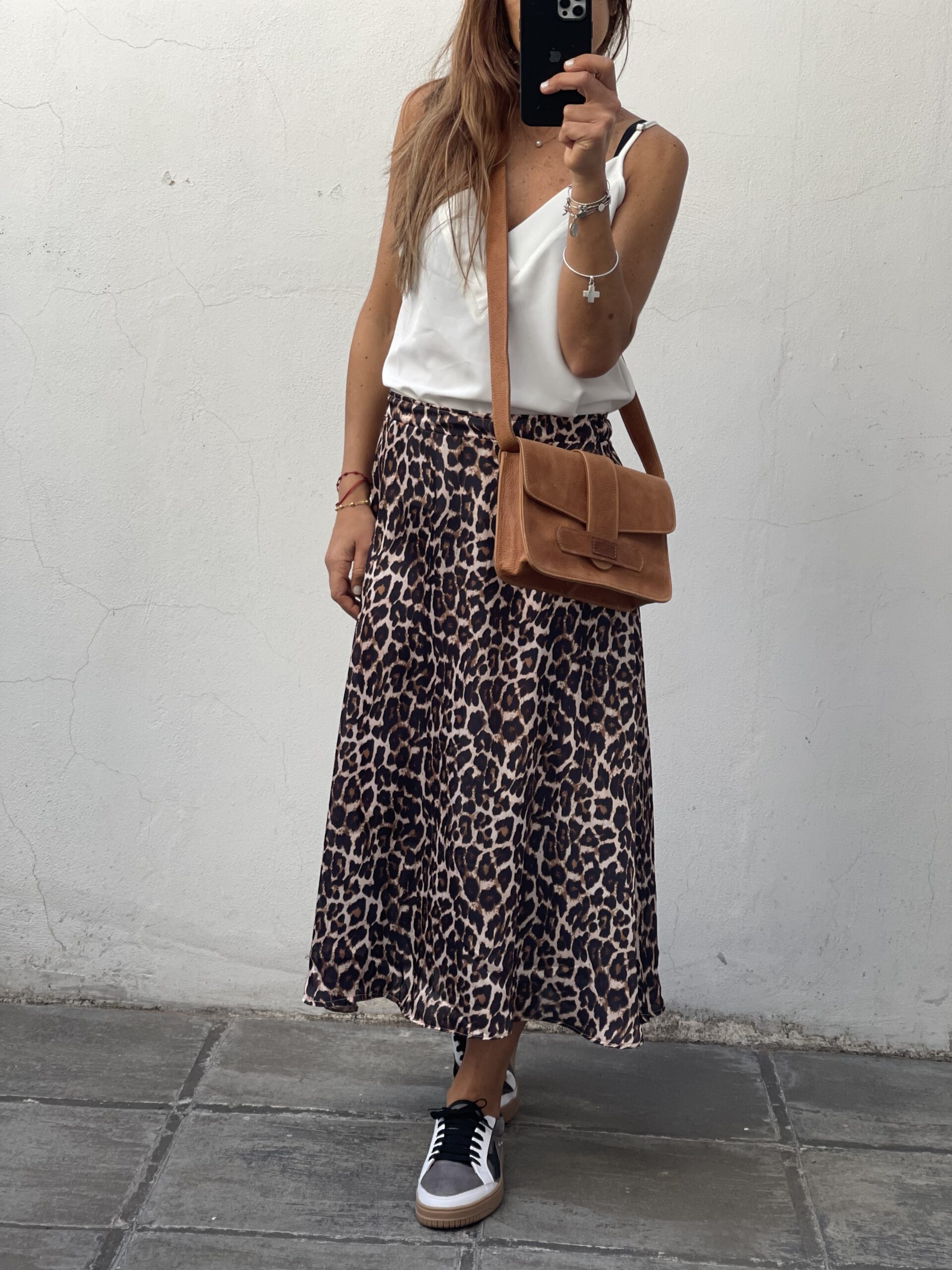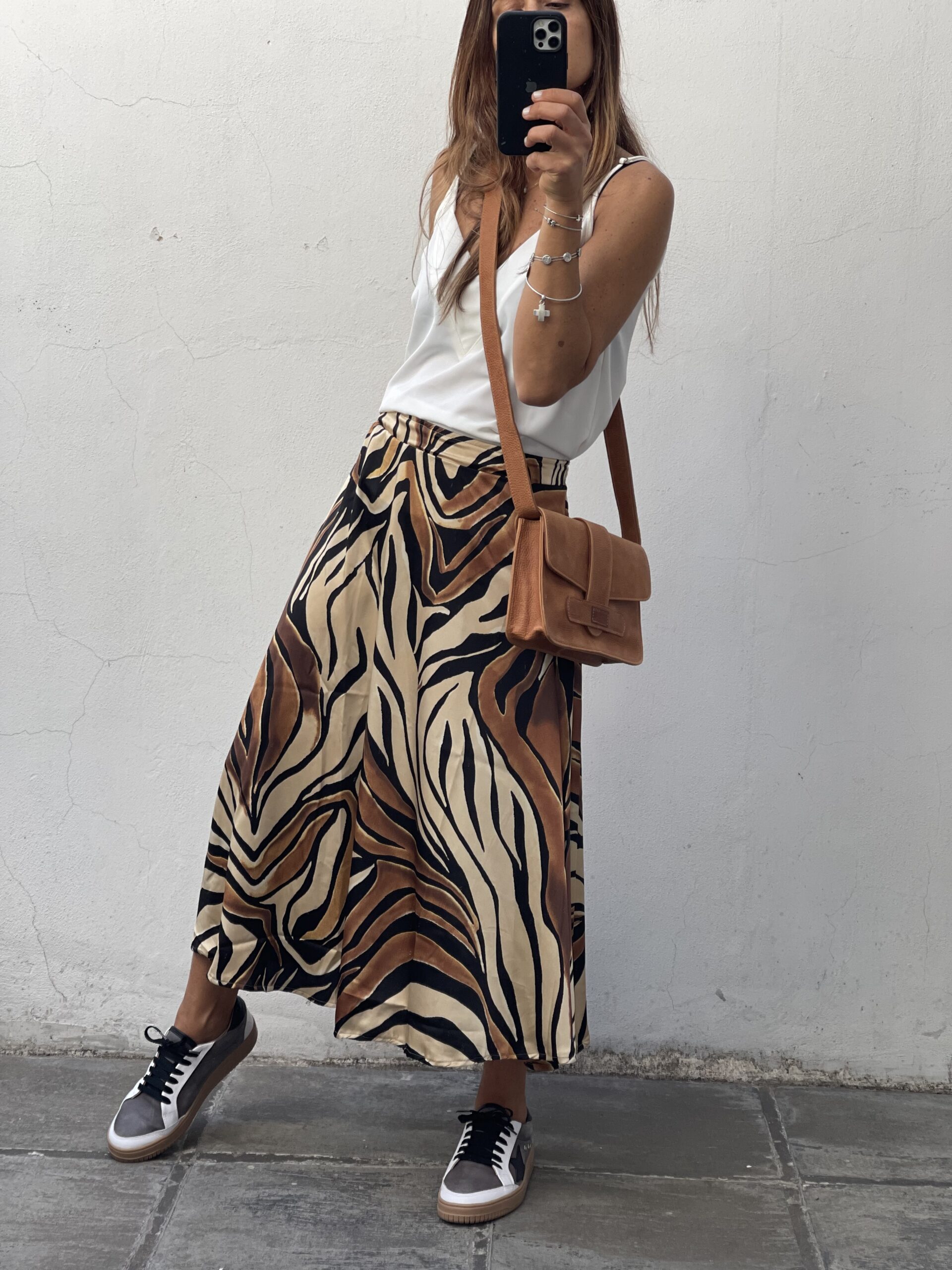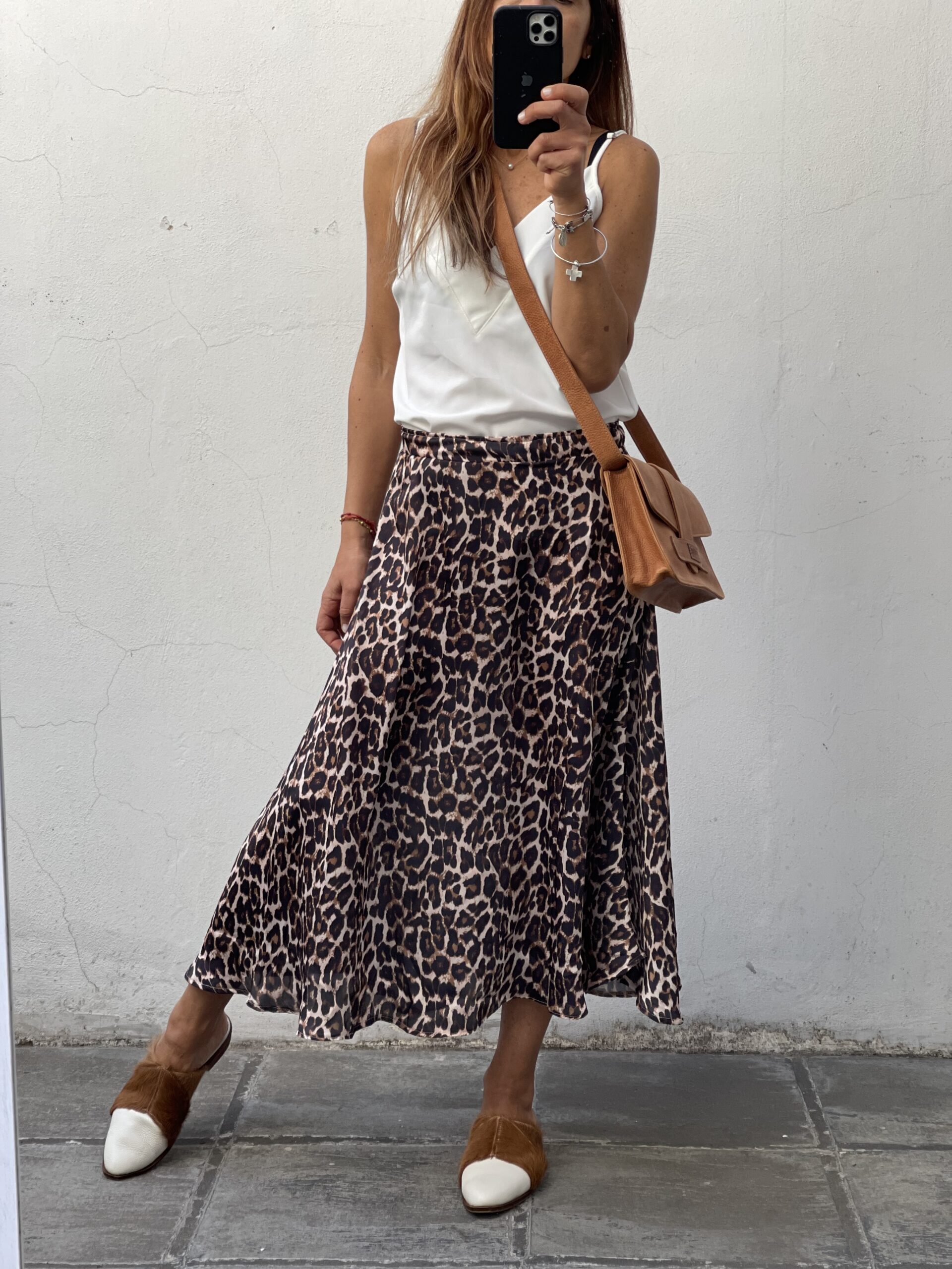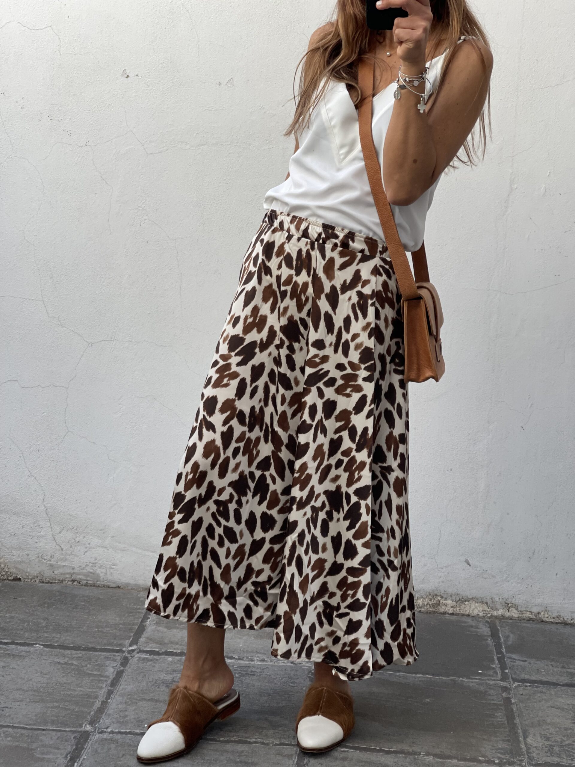 Pollera de seda con cintura elástica y en evasé.