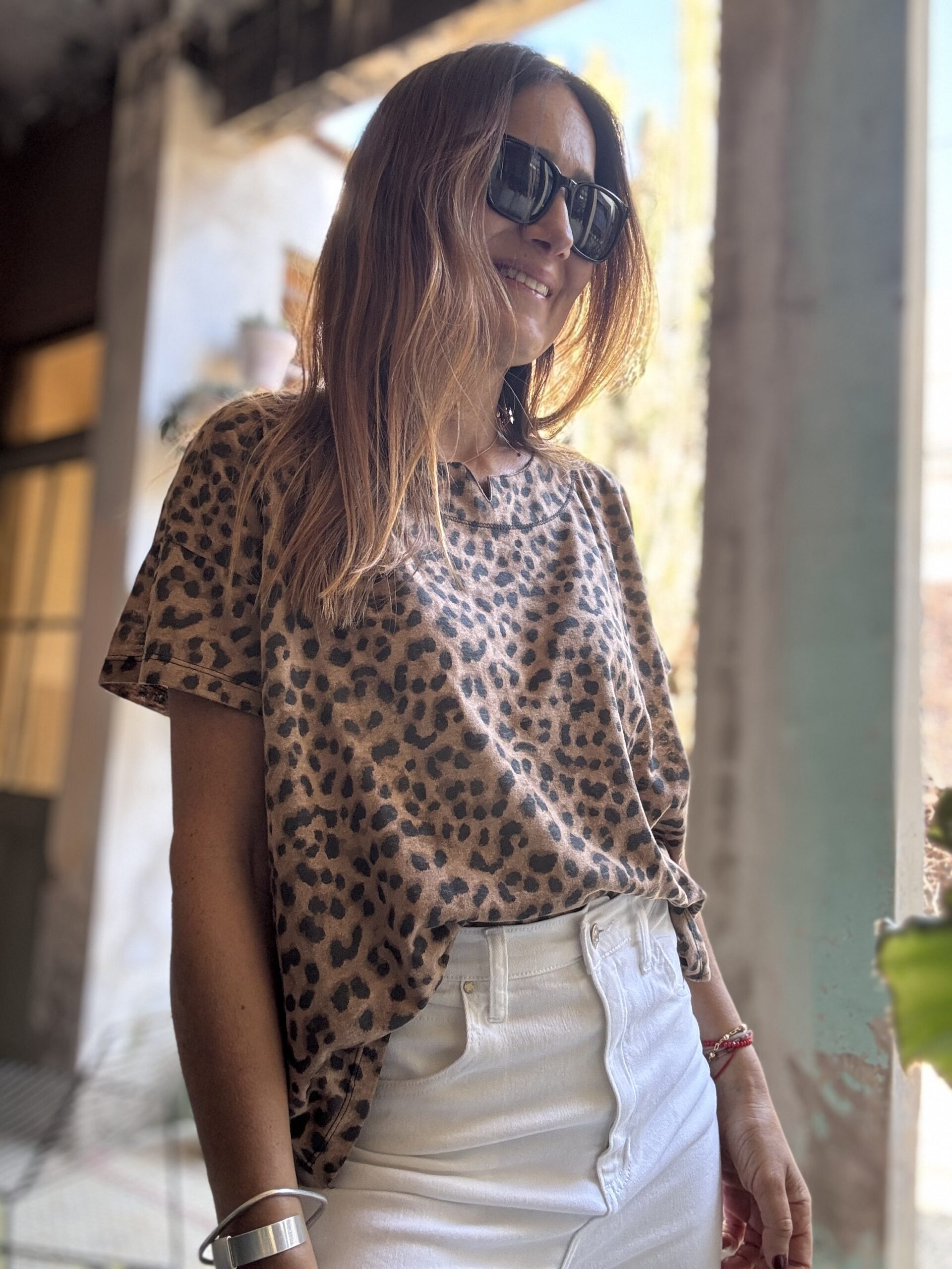 Remerón ancho con mangas amplias y tajos laterales.  Presenta terminación irregular y cuello con vista con terminación de bordador.